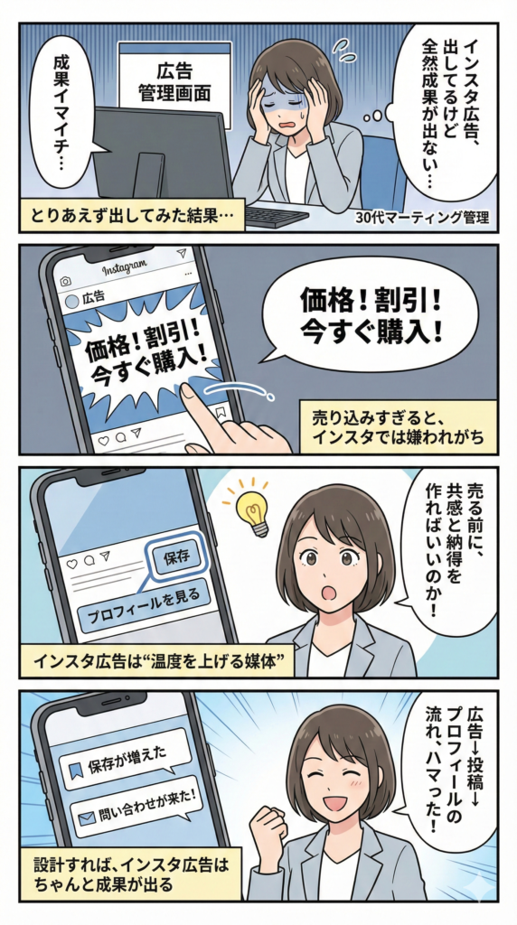 インスタ広告で成果が出るかどうかは「何を出すか」より「どう使うか」で決まります。